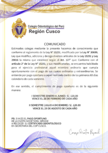 AdministradrorColegio Cambia tu foto de portadaSubir Cambia tu foto de portadaSubir AdministradrorColegio El estado de la cuenta de este usuario es Aprobado Información Información Entradas Entradas Comentarios Comentarios ELECCIONES COMPLEMENTARIAS 2026 Hace 9 horas in: Comunicados sin comentarios PAGO DE LA CUOTA SOCIETARIA 2026 Hace 9 horas in: Comunicados sin comentarios CONSTRUCCIÓN DEL CERCO PERIMETRICO EN OROPEZA Hace 9 horas in: Noticias sin comentarios DESORDENES TEMPOROMANDIBULARES: Diagnóstico y tratamiento Hace 9 horas in: Cursos de Capacitación sin comentarios ODONTOLOGÍA RESTAURADORA Y ESTÉTICA Hace 9 horas in: Curso de Postgrado sin comentarios ENDODONCIA Y RESTAURACIÓN Hace 9 horas in: Curso de Postgrado sin comentarios